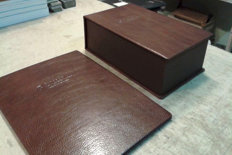 142. Wyściełanie skórą wnętrza metalowej szkatułki z trzema kasetami